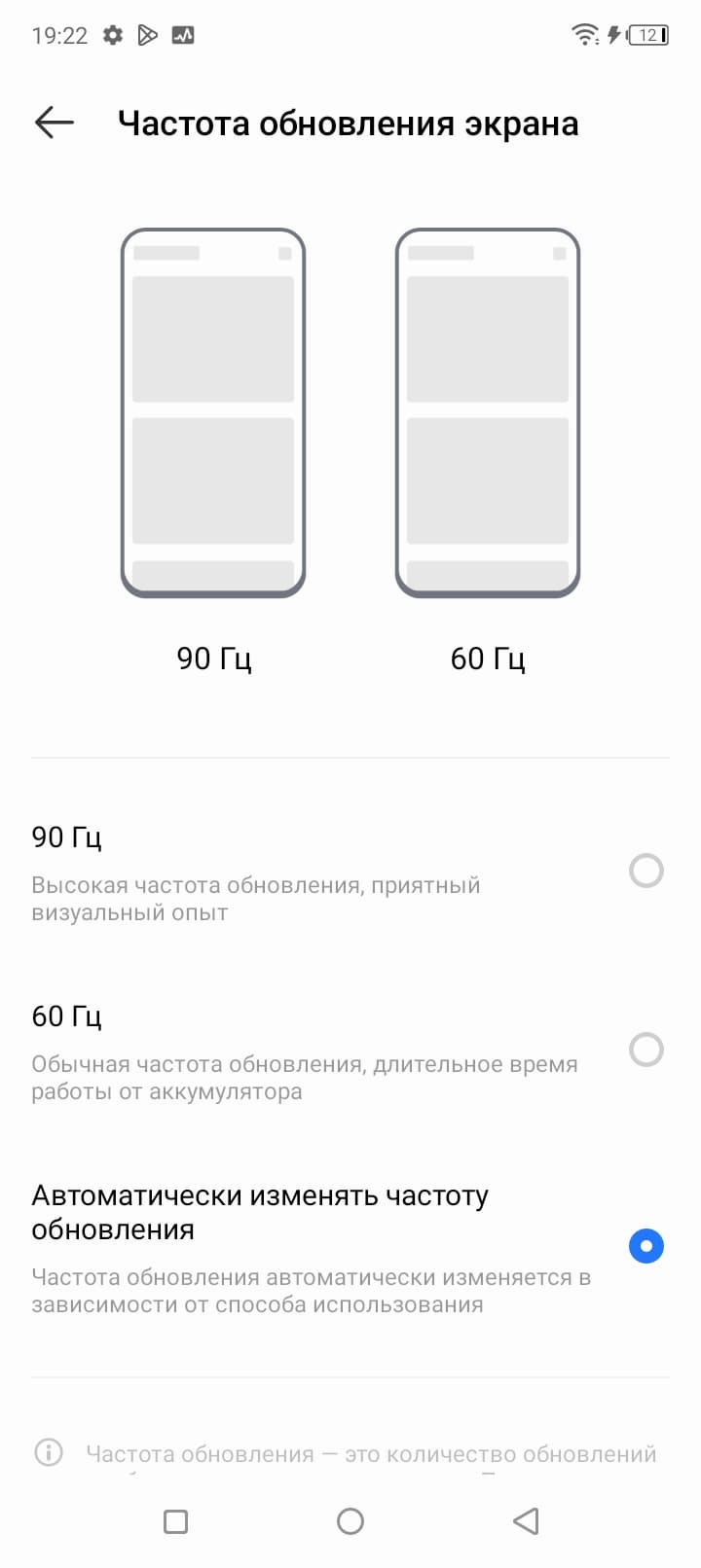 В настройках экрана можно включить режим с повышенной до 90 Гц частотой обновления, что приводит как минимум к увеличению плавности прокрутки списков в меню.