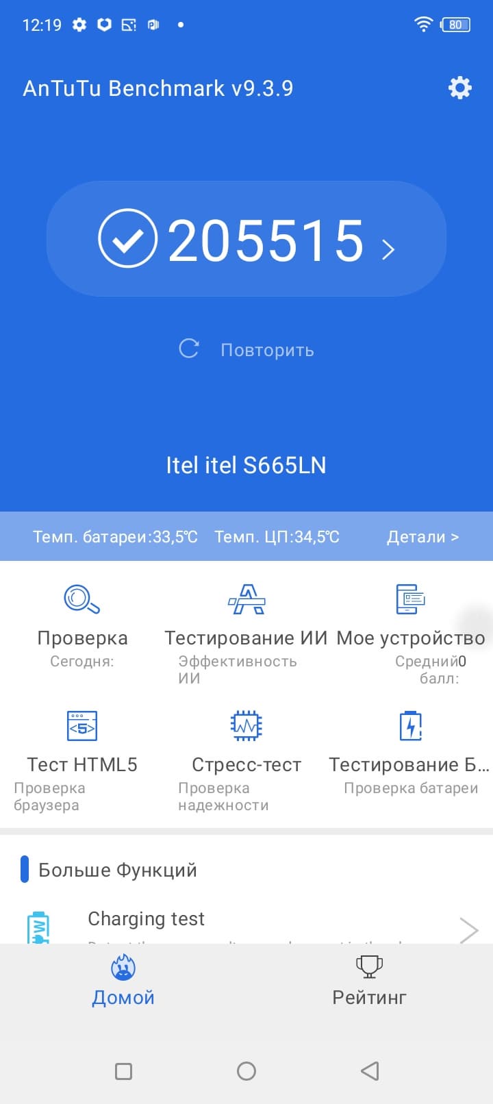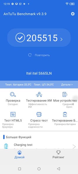 Тестирование в комплексных тестах AnTuTu и GeekBench: