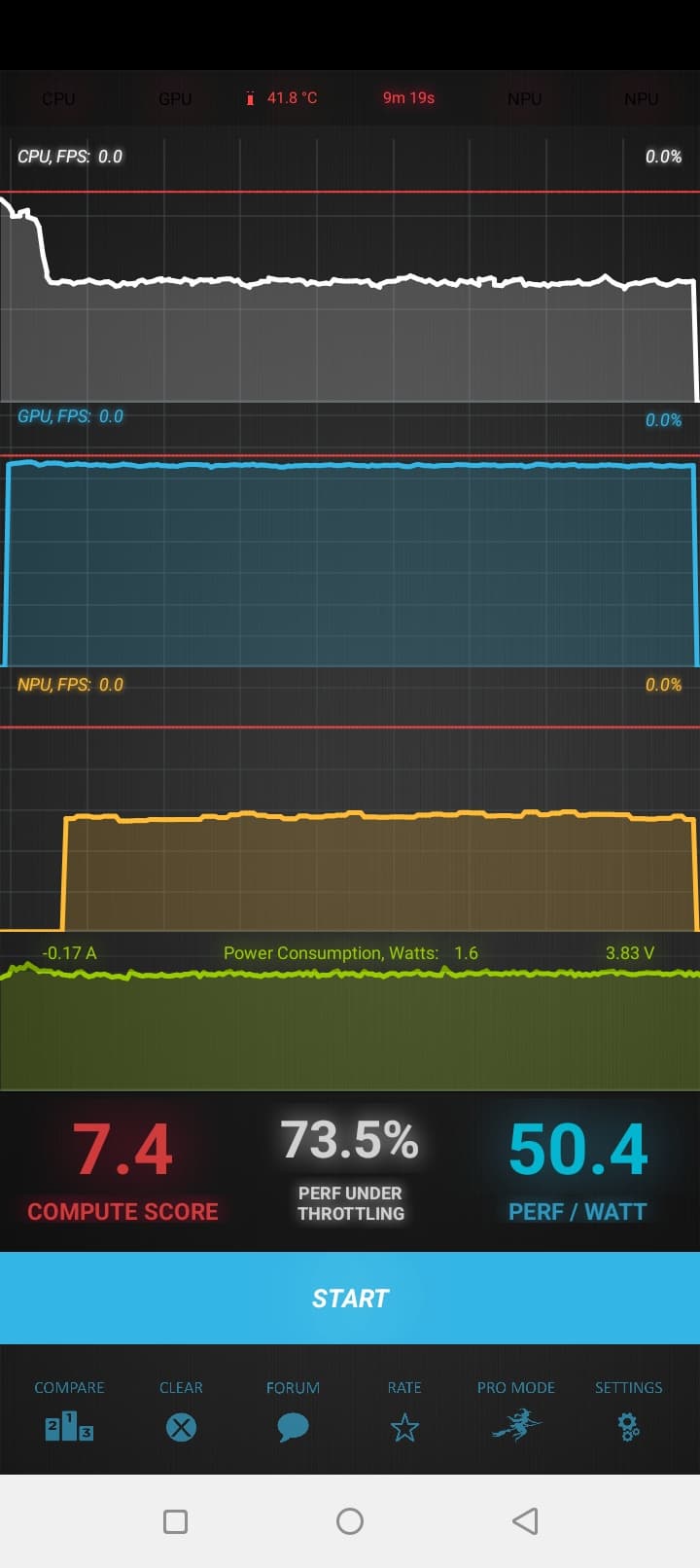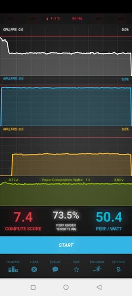 Тест на снижение производительности при нагреве мы проводим с помощью программы Burnout Benchmark, которая позволяет нагружать CPU, GPU и NPU: