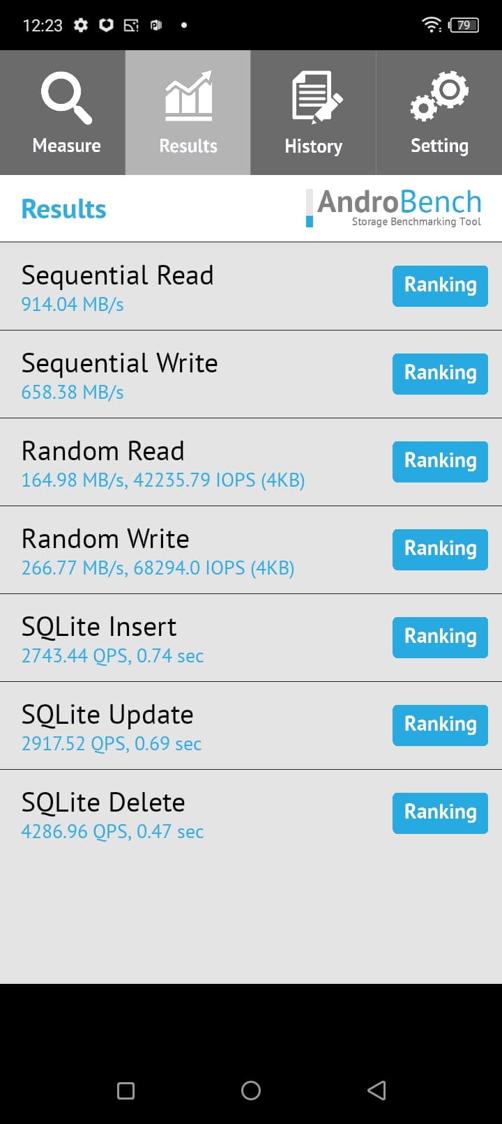 Результаты теста AndroBench на скорость работы с памятью: