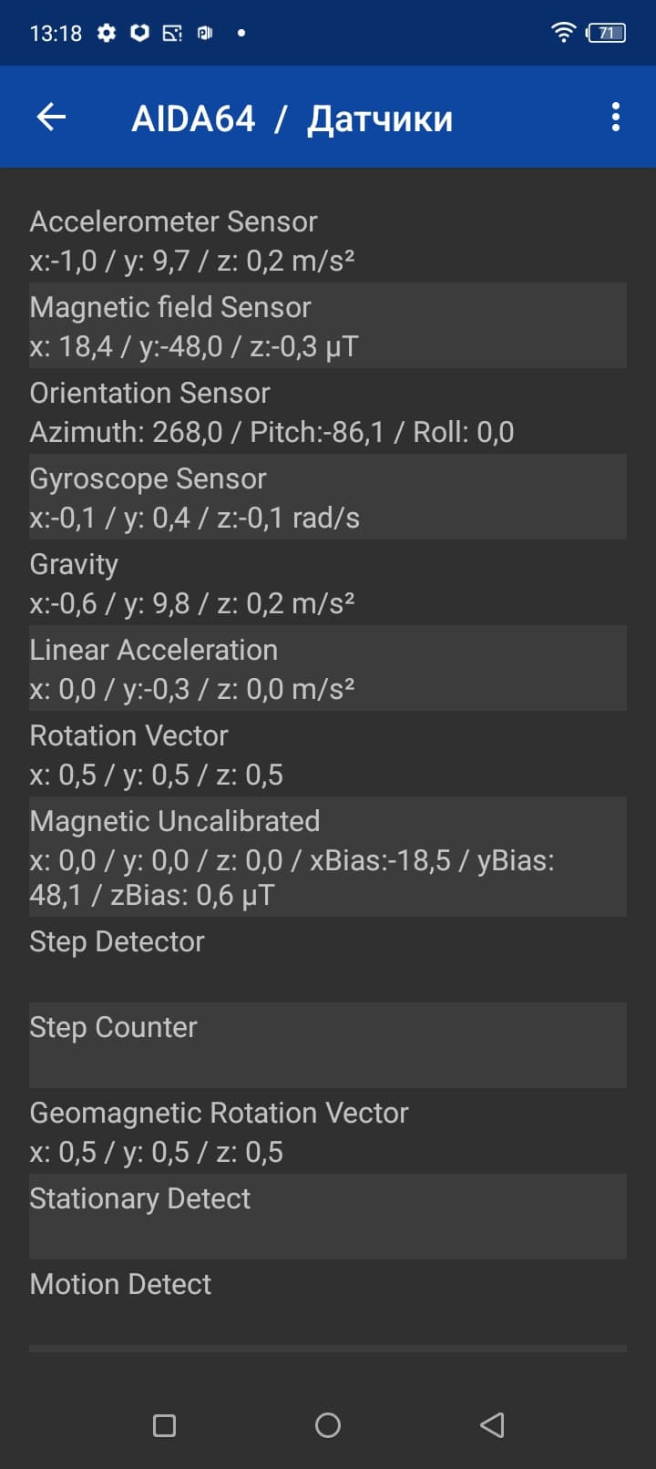 Навигационный модуль работает с GPS (A-GPS), Глонасс, BeiDou и Galileo. Первые спутники при холодном старте обнаруживаются быстро, точность позиционирования не вызывает претензий. Приятно, что разработчики не стали жадничать, и оснастили свою бюджетную новинку набором установленных датчиков, который включает все самые необходимые, вплоть до гироскопа.