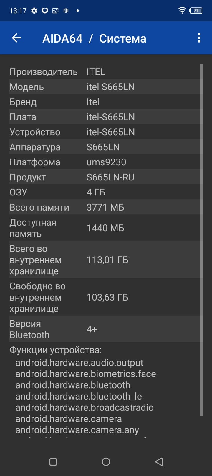 Основные характеристики Itel S23 (модель S665L)