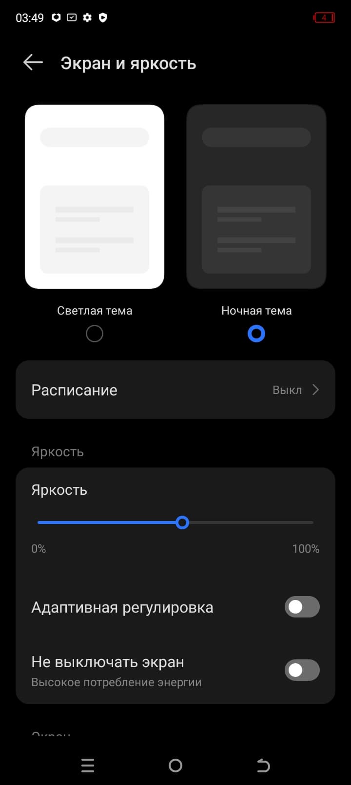 При ручном управлении яркостью и при выводе белого поля во весь экран максимальное значение яркости составило 525 кд/м². Максимальная яркость высокая (хотя есть момент, о котором ниже), и, учитывая отличные антибликовые свойства, смартфоном как-то можно будет пользоваться даже в солнечный день вне помещения. Минимальное значение яркости — 7 кд/м², поэтому в полной темноте яркость можно понизить до комфортного значения. Автоматической регулировки яркости по датчику освещенности нет. На любом уровне яркости значимая модуляция подсветки отсутствует, поэтому нет и никакого мерцания экрана.
