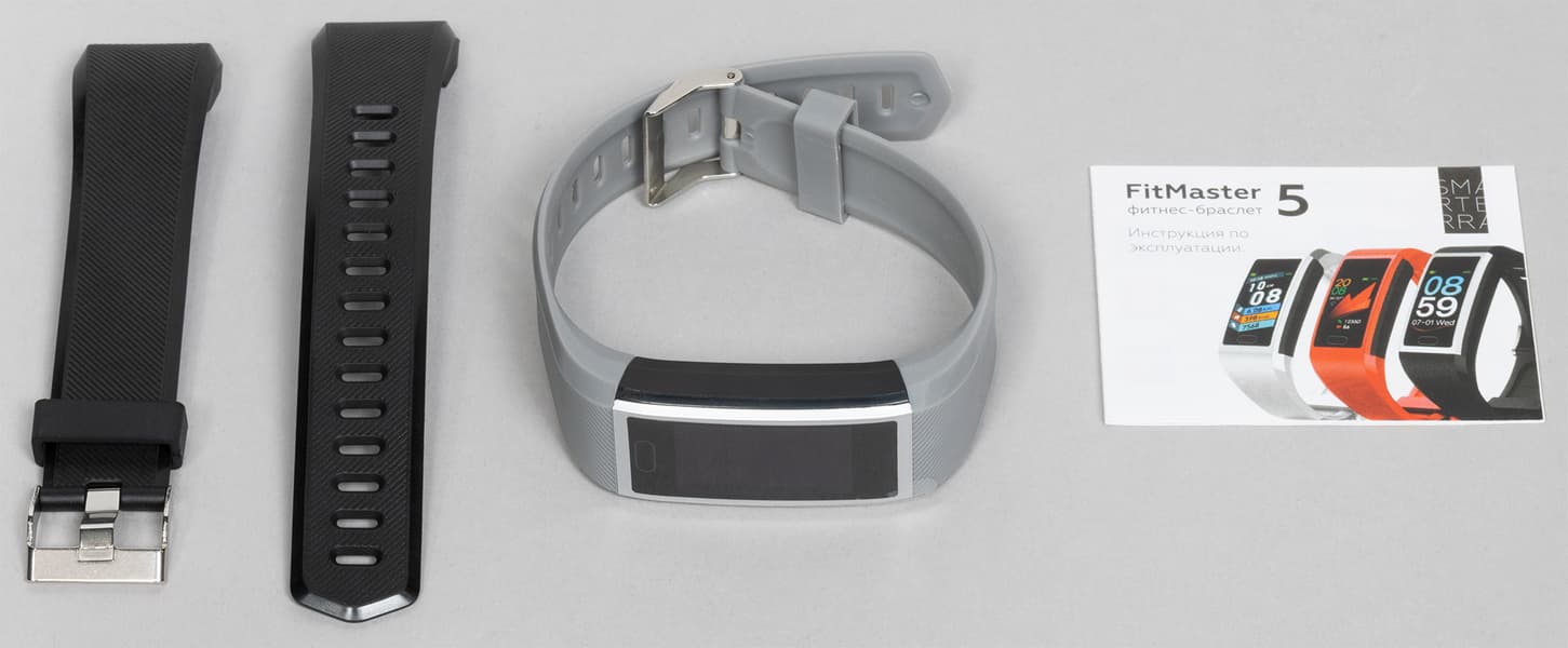 Комплектация в обоих случаях очень скромная, но вместе с FitMaster мы получаем альтернативный ремешок.