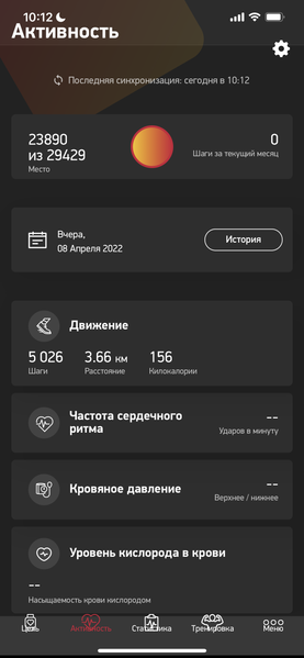 Еще больше потемкинские деревни напоминает главное меню. Здесь есть опция «Уровень кислорода в крови», но никаких свидетельств того, что браслет может делать соответствующее измерение, мы не нашли. Нам предлагается просто ввести данные вручную. В чем же смысл? Также есть измерение кровяного давления, и эти данные браслет действительно получает сам. Но как — загадка. И в какой степени им можно доверять, если даже во флагманских устройствах это не реализовано или же требует весьма непростых дополнительных действий вроде калибровки со специализированным тонометром?