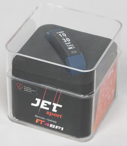 А вот браслет Jet Sport продается в менее удобной, хотя и более эффектной коробке — с прозрачной крышкой, через которую видно само устройство.