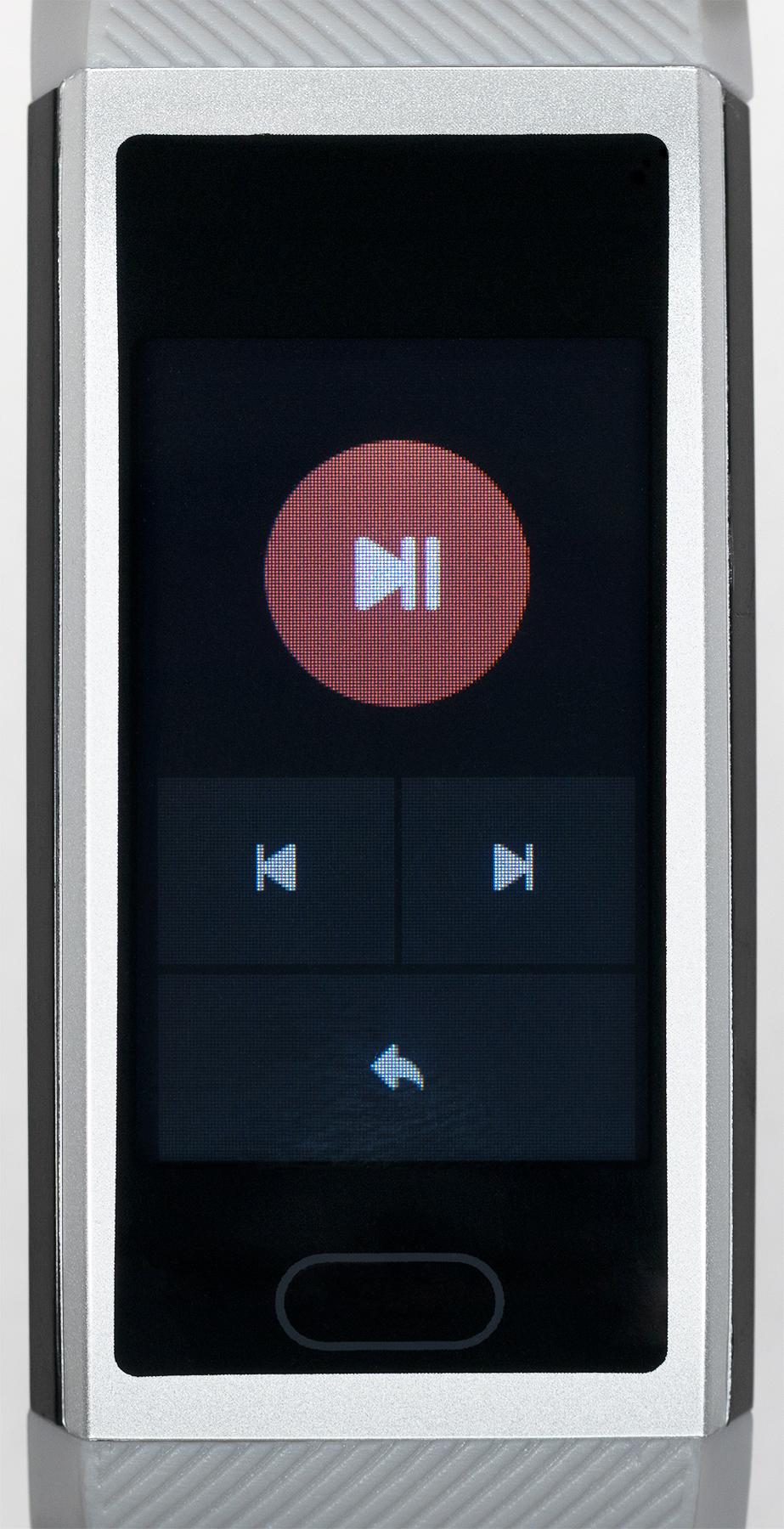 Браслет может управлять воспроизведением музыки на смартфоне (простейшие функции — пауза/играть, следующий/предыдущий трек), но делать это очень неудобно именно из-за необходимости долгих нажатий на каждом этапе: зайти в приложение — долгое нажатие, запустить воспроизведение — долгое нажатие, переключить трек — долгое нажатие...