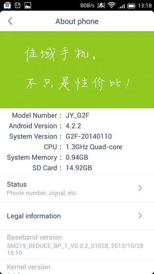 Что касается стоимости рассматриваемого сегодня устройства, то она, как уже говорилось в начале статьи, очень невелика и составляет всего около $100-150. Но, честно говоря, именно эту модель после скрупулезного тестирования совершенно не хочется хвалить, даже учитывая ее привлекательную цену. У смартфона в принципе хорошая для своего класса производительность (впрочем, именно эта характеристика сейчас практически никого уже не беспокоит — производительности для основных нужд теперь хватает любому смартфону среднего уровня и выше), плюс неплохая камера, однако на этом плюсы заканчиваются. Качество экрана оставляет желать лучшего, чтобы заставить работать GPS-модуль, необходимо предпринимать какие-то дополнительные действия (читай: «танцы с бубном»), а энергопотребление просто удручает. Вроде бы кастомизированная прошивка LeWa OS предполагает легкое обновление версий по воздуху (OTA), что могло бы оперативно исправить ряд недочетов, однако у Jiayu G2F программный интерфейс этого модуля представлен только китайскими иероглифами, и заставить обновиться прошивку привычным путем нет никакой возможности. В итоге смартфон превращается в этакий конструктор «сделай сам» — все нужно «допиливать» и «дошлифовывать», а заниматься этим будет интересно далеко не каждому. При весьма неплохих заявленных характеристиках работа с данным устройством порой просто раздражает: масса неожиданных проблем, возникающих там, где их быть не должно, заставляет вспомнить о том, что наверное иногда лучше немного переплатить, будучи уверенным, что производитель потратит свое время не только на производство, но и на доработку и дошлифовку своего продукта, а не выкинет его в продажу столь «сырым», как это случилось с Jiayu G2F.