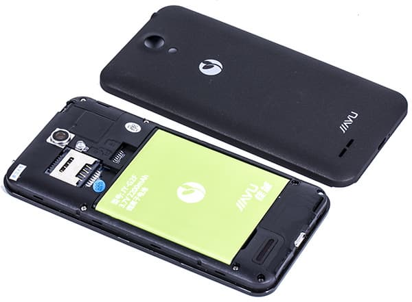 Корпус Jiayu G2F полностью выполнен из пластмассы — металла в нем нет. В который уже раз мы встречаемся со странным решением разработчиков, когда отличная эргономичность матовой и шершавой задней поверхности нивелируется скользкими глянцевыми боковыми гранями устройства. Возможно, шершавая задняя поверхность и позволяет устройству более надежно удерживаться в ладони, но поднимать-то со стола его приходится именно за эти скользкие боковые грани, что немного портит впечатление от знакомства со смартфоном.