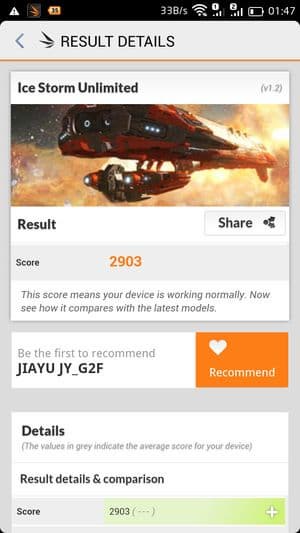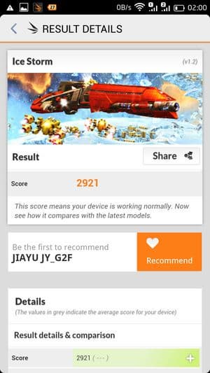 Аппаратная платформа Jiayu G2F строится на базе однокристальной системы (SoC) MediaTek MT6582. Центральный процессор здесь имеет 4 ядра ARM Cortex-A7, работающих на частоте 1,3 ГГц. Оперативной памяти в устройстве предусмотрен 1 ГБ, а свободная системная память составляет около 2 ГБ из номинально обозначенных 4 ГБ. Любопытно, что вся встроенная память отформатирована в виде одного системного раздела, так что без root-прав она пользователю не доступна. То есть если не вставить в устройство карточку памяти microSD, аппарат откажется даже элементарно сохранить скриншот — ему просто некуда. Так что без вставленной карты памяти смартфон Jiayu G2F оказывается совершенно бесполезен. Если подсоединить аппарат к компьютеру, то файловый менеджер также увидит в качестве флэш-памяти устройства только память вставленной карточки (если она вставлена).