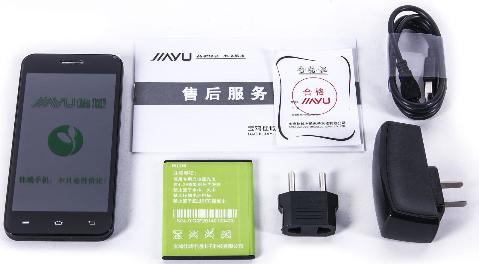 Компания-производитель не утруждает себя соблюдением единообразия в упаковках своих изделий: коробки протестированных нами Jiayu G3, Jiayu G4 и вот теперь Jiayu G2F кардинально отличаются друг от друга. Но если упаковки Jiayu G3 и Jiayu G4 вполне соответствуют привычным представлениям о том, какими должны поступать на полки магазинов «приличные» смартфоны, то упаковка бюджетного Jiayu G2F выбивается из рамок этих общепринятых норм. Смартфон продается в нарочито простой, неряшливой утилитарного вида грубо сложенной коробке из неокрашенного и неоклеенного картона, которую и упаковкой-то назвать язык не поворачивается. Возможно, таким образом производители хотели подчеркнуть, что в стоимость этого недорогого устройства не включено ничего «лишнего».