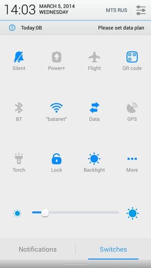 Самопроизвольных перезагрузок/выключений за время тестирования не наблюдалось, равно как и притормаживаний или зависаний системы. Однако время от времени имеет место какая-то странная проблема с подергиванием изображения на экране, при этом подсветка экрана постоянно моргает и меняет свой цвет с синего на зеленый. Это проходит само, когда аппарат засыпает и просыпается вновь. Кстати, и разблокировать экран сдвигом специальной иконки на экране часто бывает проблематично: она никак не желает сдвигаться до конца, и экран остается заблокированным, что сильно раздражает. В очередной раз мы сталкиваемся с недоделками китайских разработчиков, не желающих доводить смартфон до ума в полной мере и выпускающих на рынок вот такие «глючные» изделия, надеясь, что по столь небольшой цене их купят и так.