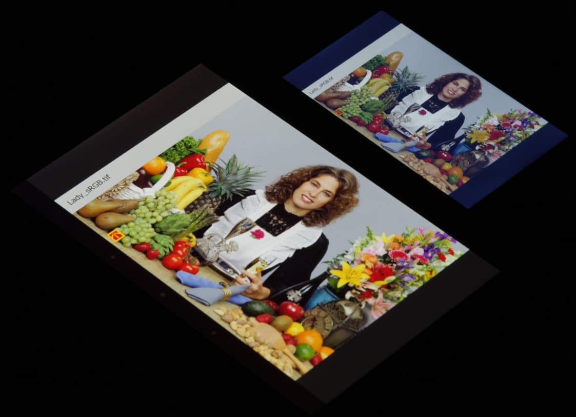 В итоге визуально цвета имеют естественную насыщенность. Данный спектр также показывает, что яркость белого поля выше суммарной цветовой яркости, сказывается влияние белого пикселя в матрице. Баланс оттенков на шкале серого далеко неидеальный, так как цветовая температура выше стандартных 6500 К, при этом отклонение от спектра абсолютно черного тела (ΔE) меньше 10, что для потребительского устройства считается приемлемым показателем, однако при этом ΔE и цветовая температура значительно изменяются от оттенка к оттенку — это отрицательно сказывается на визуальной оценке цветового баланса. (Самые темные области шкалы серого можно не учитывать, так как там баланс цветов не имеет большого значения, да и погрешность измерений цветовых характеристик на низкой яркости большая.)