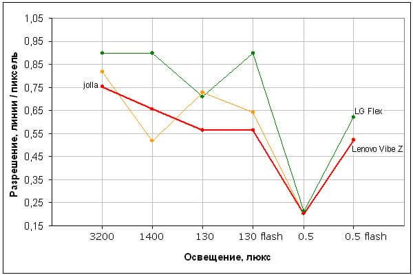 На взгляд экран Jolla немного темнее, что подтверждает и статистика из графического редактора. Двоение отраженных объектов в экране Jolla очень слабое, это свидетельствует о том, что между внешним стеклом и поверхностью матрицы нет воздушного промежутка. На внешней поверхности экрана есть специальное олеофобное (жироотталкивающее) покрытие (эффективное, не хуже, чем у Nexus 7), поэтому следы от пальцев удаляются существенно легче, а появляются с меньшей скоростью, чем в случае обычного стекла.