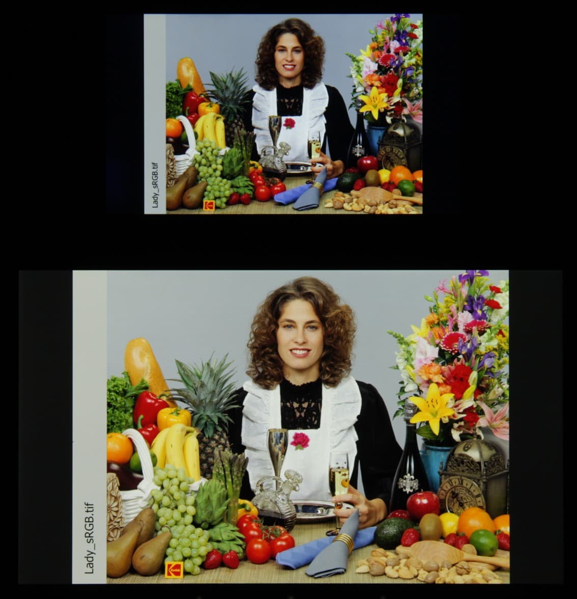 Равномерность хорошая, цветовой тон точно отличается от тона экрана Nexus 7 (при фотографировании цветовой баланс принудительно установлен на 6500 К). И тестовая картинка: