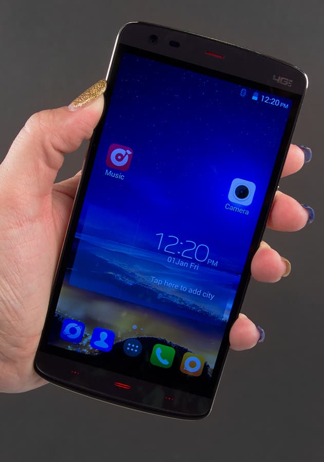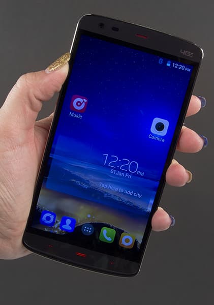 Смартфон по призванию и назначению является весьма крупным мобильным устройством. В качестве экрана здесь выбрана 5,5-дюймовая матрица, так что говорить о каких-либо комфортных ощущениях при удержании в руке не приходится, смартфон для этого слишком большой и к тому же достаточно тяжелый. В этом кроется, кстати, первая ложь из множества лукавств разработчиков, к которым они прибегают при описании своей продукции. Данные по массе устройства в официальных спецификациях оказались сильно занижены (139 г), в реальности же аппарат весит даже более 165 г, это показали наши собственные измерения. Это же касается и самих габаритов устройства: официальные данные по размерам настолько сильно оказались преуменьшены, что остается только удивляться самоуверенности китайских производителей.