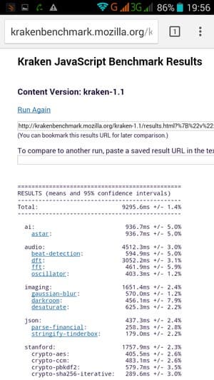 Что касается бенчмарков для оценки скорости движка javascript, то стоит всегда делать скидку на то, что в них результаты существенно зависят от браузера, в котором запускаются, так что сравнение может быть истинно корректным только на одинаковых ОС и браузерах, а такая возможность имеется при тестировании не всегда. В случае с ОС Android мы всегда стараемся использовать Google Chrome.