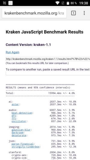 Что касается бенчмарков для оценки скорости движка javascript, то стоит всегда делать скидку на то, что в них результаты существенно зависят от браузера, в котором запускаются, так что сравнение может быть истинно корректным только на одинаковых ОС и браузерах, а такая возможность имеется при тестировании не всегда. В случае с ОС Android мы всегда стараемся использовать Google Chrome.
