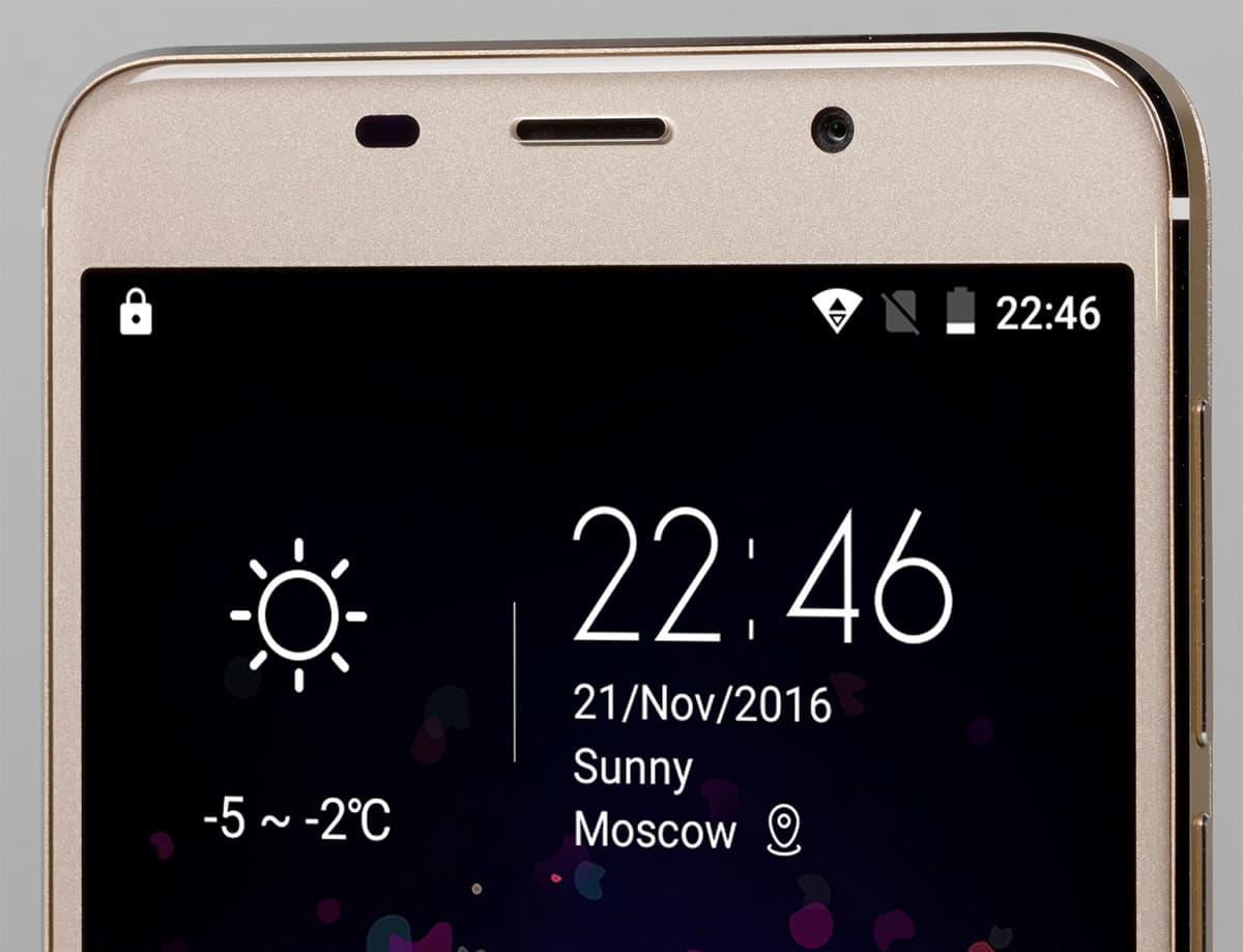 Leagoo M5 Plus оснащен сенсорным дисплеем IPS с размерами 68×121 мм при диагонали в 5,5 дюйма. Разрешение при этом составляет всего лишь 1280×720 точек, то есть даже не Full HD, поэтому плотность точек — всего около 267 ppi. Рамка вокруг экрана имеет ширину по бокам примерно в 4 мм, сверху — 15 мм, снизу — 16 мм.