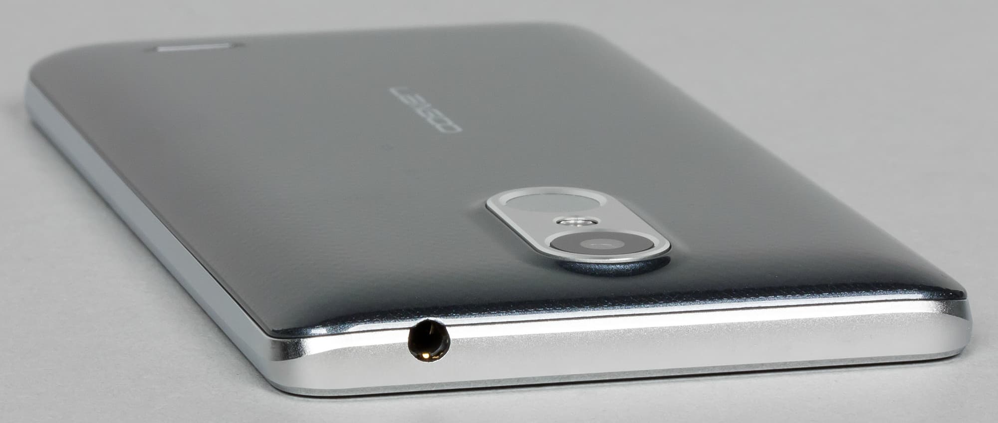 Разъем 3,5 мм для миниджека наушников установлен на верхнем торце, он очень некрасиво врезан с краю, а не по центральной продольной оси. К тому же он частично приходится на пластиковую заднюю крышку, формируя в ней вырез — в общем, дизайнер-перфекционист тут бы точно заплакал. Привычного второго микрофона не видно: скорее всего, система шумоподавления у смартфона вообще не предусмотрена.