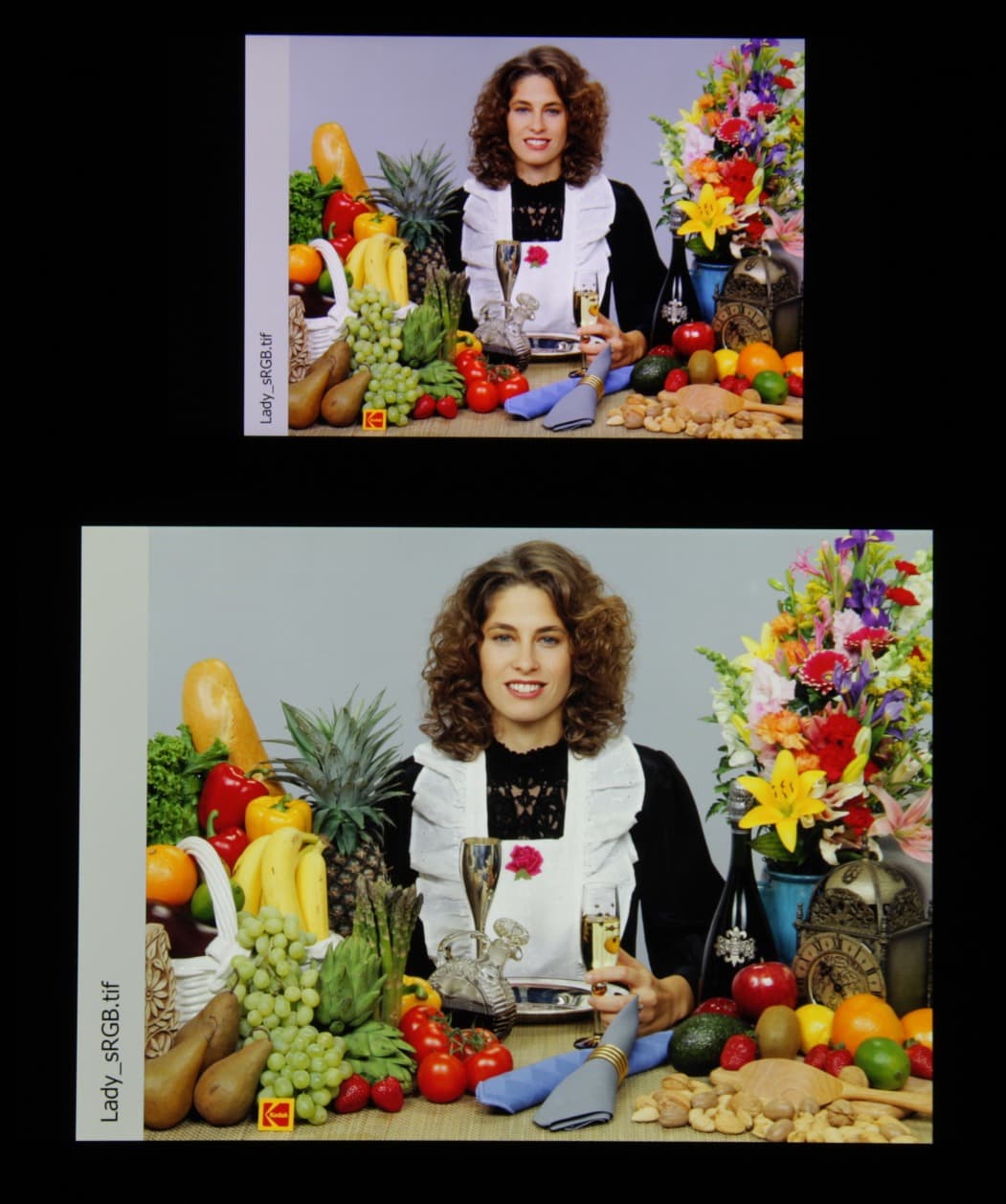В итоге цвета имеют естественную насыщенность. Баланс оттенков на шкале серого очень плохой, так как цветовая температура сильно выше стандартных 6500 К, и отклонение от спектра абсолютно черного тела (ΔE) больше 10 на большинстве оттенков серого, что даже для потребительского устройства считается плохим показателем. При этом цветовая температура существенно изменяется от оттенка к оттенку — это отрицательно сказывается на визуальной оценке цветового баланса. (Самые темные области шкалы серого можно не учитывать, так как там баланс цветов не имеет большого значения, да и погрешность измерений цветовых характеристик на низкой яркости большая.)