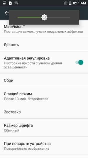 Яркость дисплея имеет автоматическую регулировку, основанную на работе датчика внешнего освещения. Тест AnTuTu диагностирует поддержку 3 одновременных касаний мультитач. При поднесении смартфона к уху экран адекватно блокируется датчиком приближения. Управление в перчатках не поддерживается.
