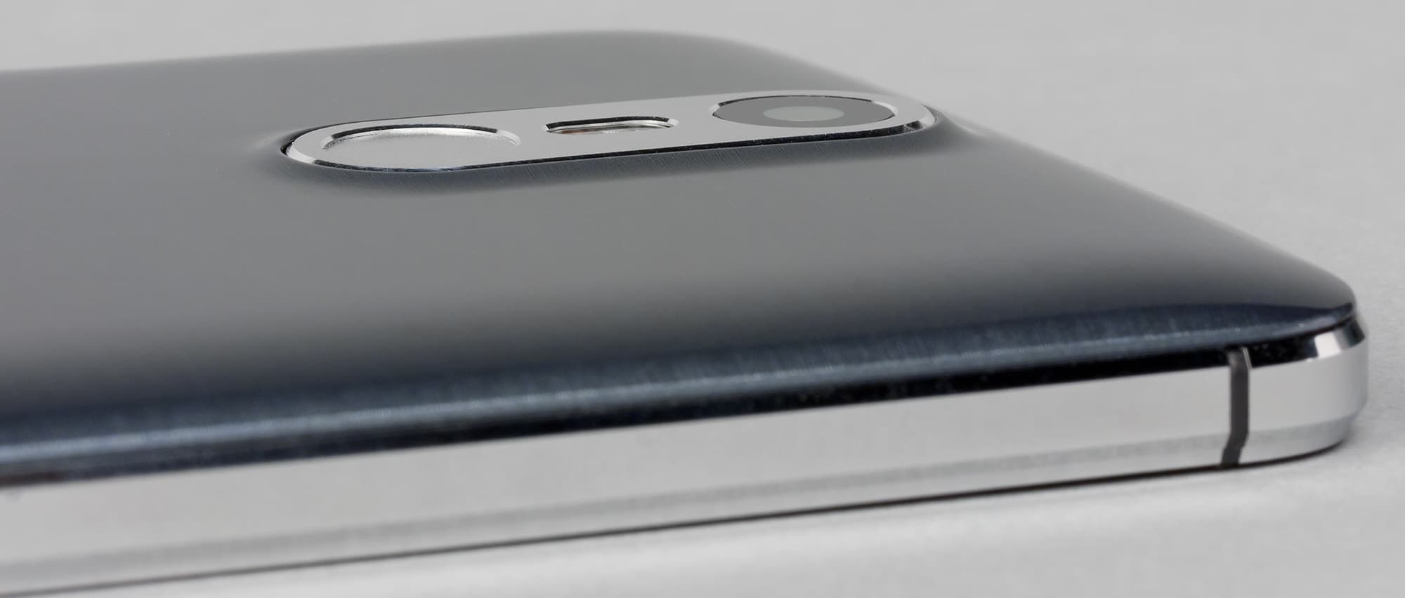 Основной динамик выведен сюда же, на тыльную сторону, поэтому звук лежащего смартфона приглушается поверхностью стола. Это самый неудачный и в целом устаревший уже вариант расположения динамика, сейчас производители стараются выводить звук в нижний торец.