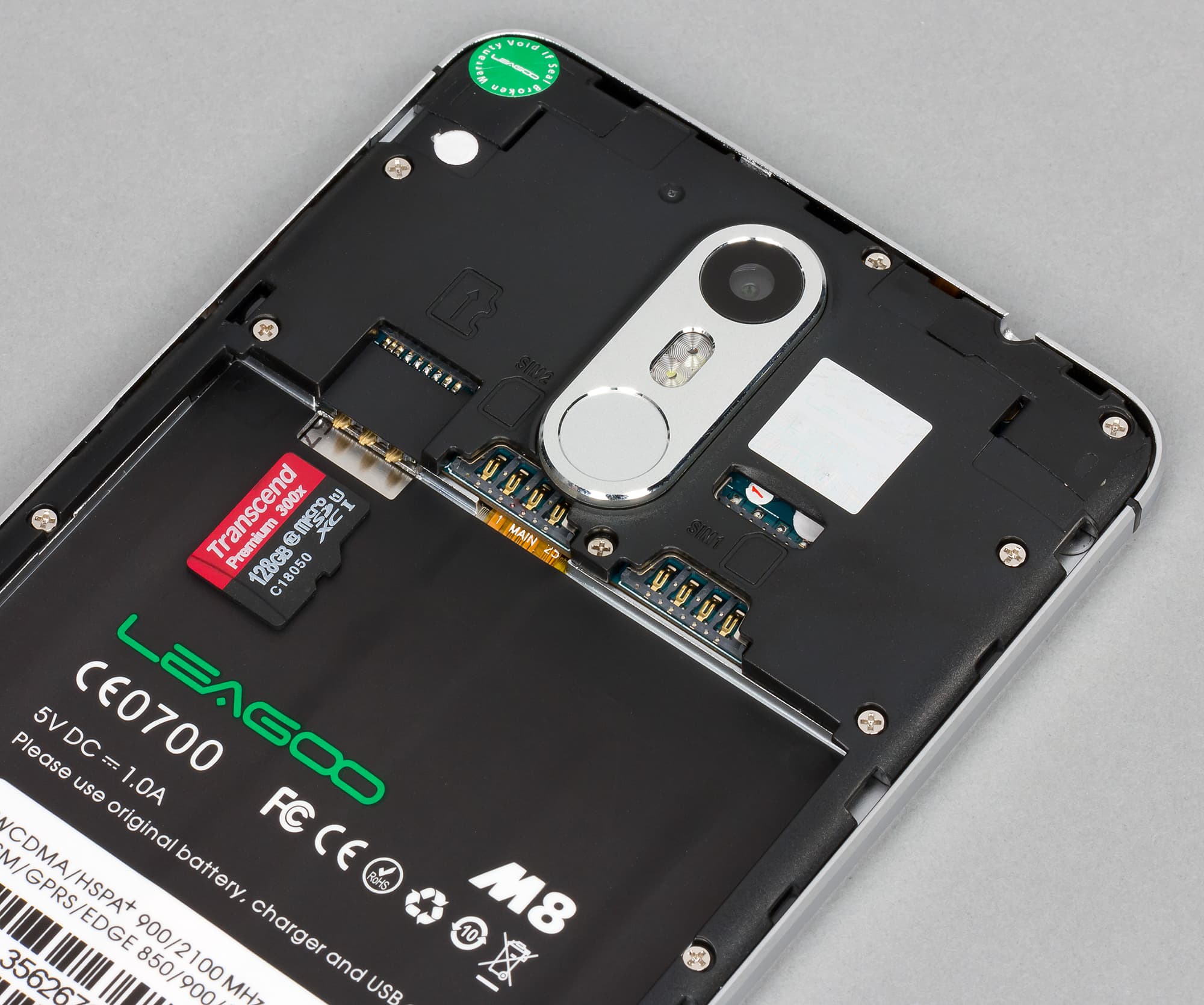 Эта рамка представляет собой широкий плоский ободок, проходящий по всему боковому периметру корпуса. Она не только визуально придает смартфону массивности, но и значительно добавляет веса в реальной жизни. Смартфоны Leagoo — это тот редкий случай, когда, вынимая батарею, практически не ощущаешь уменьшения массы, потому что тут больше всего весит не аккумулятор, а толстенная металлическая рама. К примеру, BQ-6050 Jumbo, о котором пойдет речь в одном из следующих обзоров, имеет куда большую по объему батарею (4900 мА·ч) и 6-дюймовый экран, но весит при этом даже на несколько граммов меньше, чем Leagoo M8 с его 5,7-дюймовым дисплеем и батареей на 3500 мА·ч.