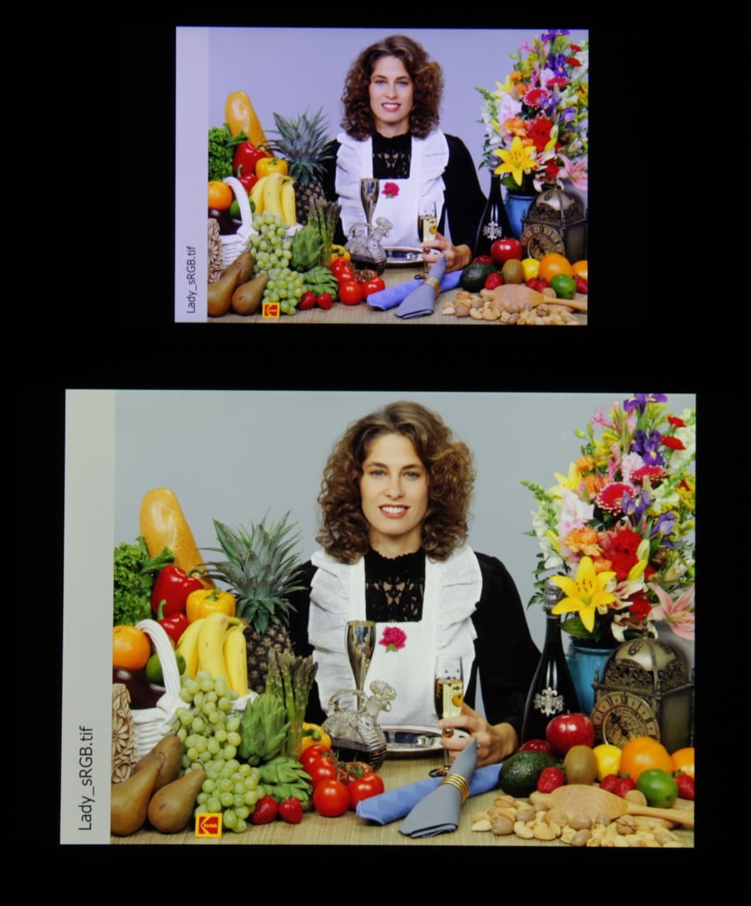 В итоге цвета имеют естественную насыщенность. Баланс оттенков на шкале серого очень плохой, так как цветовая температура сильно выше стандартных 6500 К, да и отклонение от спектра абсолютно черного тела (ΔE) больше 10, что даже для потребительского устройства считается плохим показателем. (Самые темные области шкалы серого можно не учитывать, так как там баланс цветов не имеет большого значения, да и погрешность измерений цветовых характеристик на низкой яркости большая.)