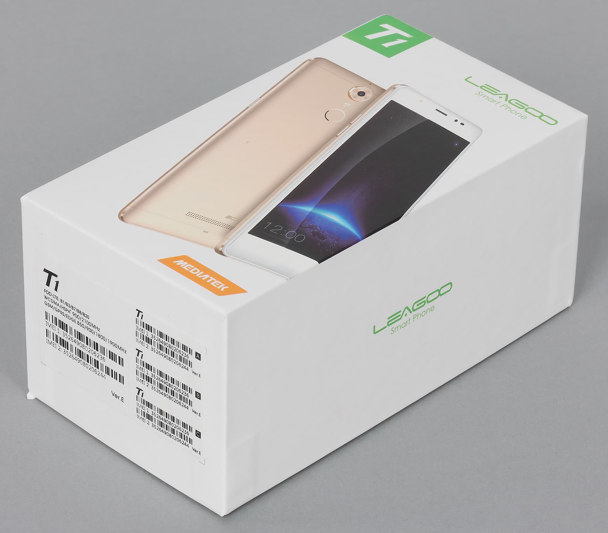 Leagoo T1 получил в качестве упаковки неожиданно крупную, особенно в высоту, коробку, размеры которой, в общем-то, не обусловлены содержимым — его не так много, чтобы заполнить такой объем, да и сам сегодняшний герой довольно компактен.