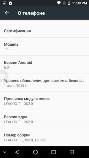 Аппаратная платформа Leagoo T1 строится на SoC MediaTek MT6737. В конфигурацию данного чипа входит четыре процессорных ядра Cortex-A53, работающих на частоте до 1,25 ГГц. За обработку графики отвечает видеоускоритель Mali-T720. Объем ОЗУ составляет лишь 2 ГБ, что по современным меркам немного, а пользовательское хранилище изначально составляет около 11 ГБ из 16. Есть возможность установки карт microSD, официально поддерживается объем до 128 ГБ. На практике наша проверочная карта Transcend Premium microSDXC UHS-1 объемом 128 ГБ была успешно распознана смартфоном. Карту microSD можно использовать для установки приложений, но для этого ее, естественно, придется отформатировать с потерей всех предыдущих данных.