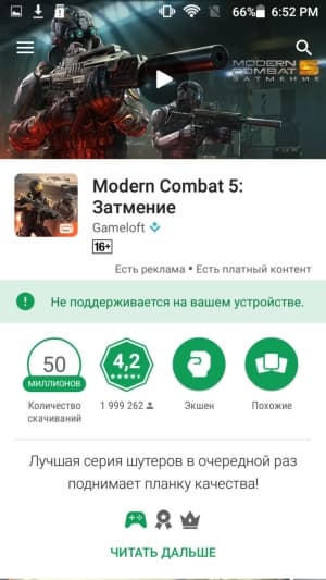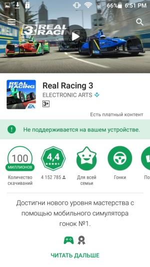 Любопытно, что некоторые привычные и наиболее популярные проверочные игры, таких как Modern Combat 5 или Real Racing 3, вообще не захотели устанавливаться на смартфон.