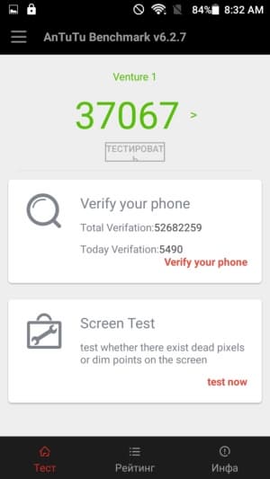 | AnTuTu (v6.x) (больше — лучше) | 37067 | 29450 | 45277 | 52598 | 48490 |