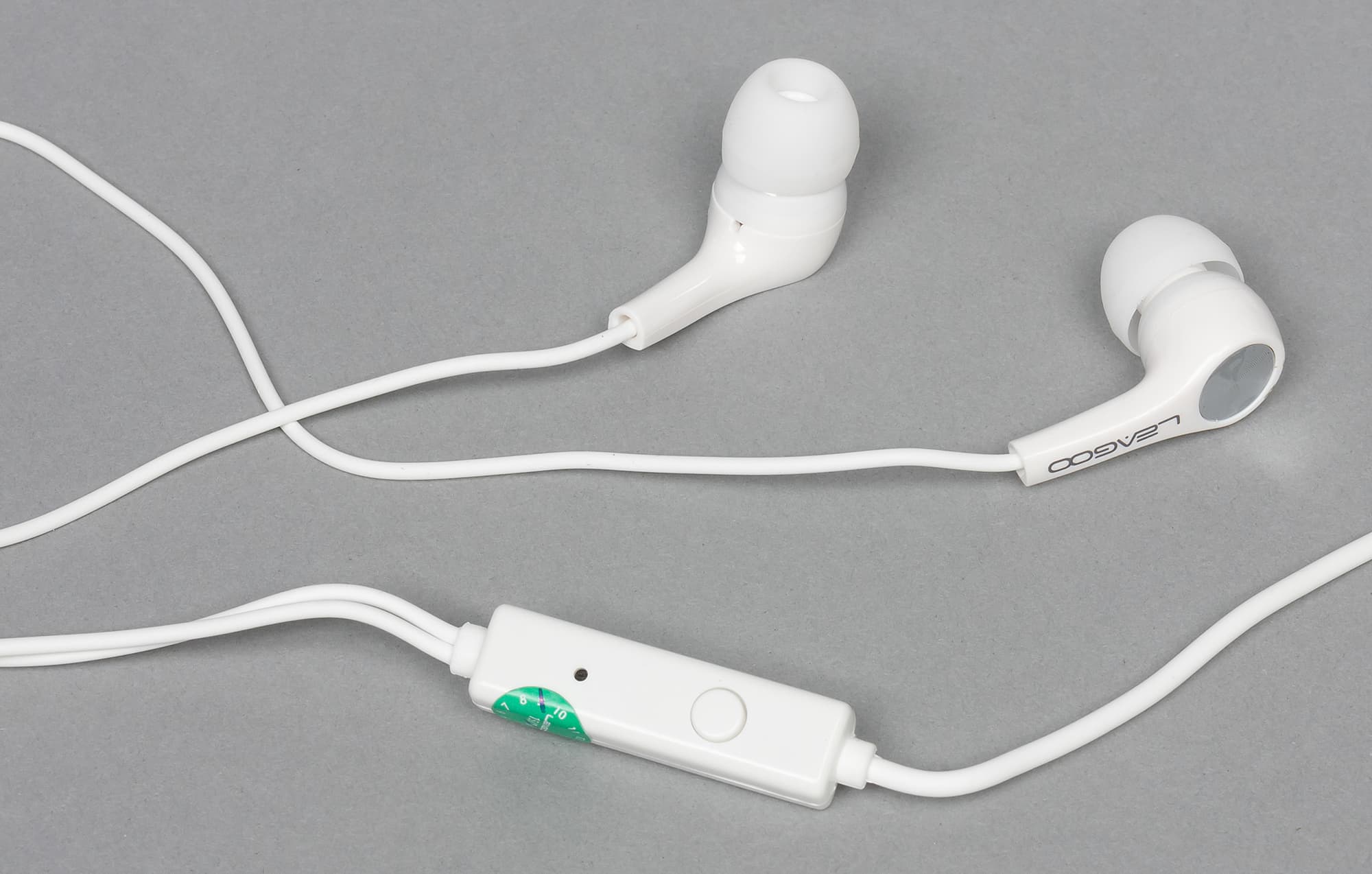 В комплект вошли: компактный, но не слишком мощный сетевой адаптер с выходным током и напряжением 5 В 1,5 А, соединительный кабель, дешевые проводные наушники с комплектом резиновых насадок и ключик для SIM-карт.