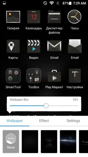 Системный интерфейс полностью перерисован, выглядит привлекательно и уж точно соответствует дизайну аппарата, выполнен в едином с ним стиле. В ланчере нет отдельного меню приложений, меню настроек по смыслу разделено на 4 вкладки, добавлена широкая поддержка жестов (постукивания, взмахи, рисование жестов). В плане оформления также есть широкий простор для деятельности: можно менять темы, регулировать размытие фона и даже выбирать способы прокрутки карусели рабочих экранов, коих тут не один десяток. Локализация, как обычно, сильно хромает: самые сложные для понимания разделы, связанные с блокировкой, паролями и жестами, как раз на русский и не переведены. А если и оказываются переведены отдельные абзацы, то понять абракадабру вида «размахивая пальмовыми и принялся за громкой состоянии» даже сложнее, чем английский. Без знания английского языка в разделы с настройками блокировки лучше не соваться.