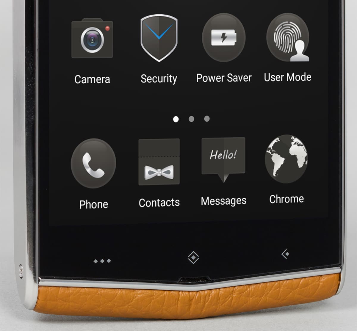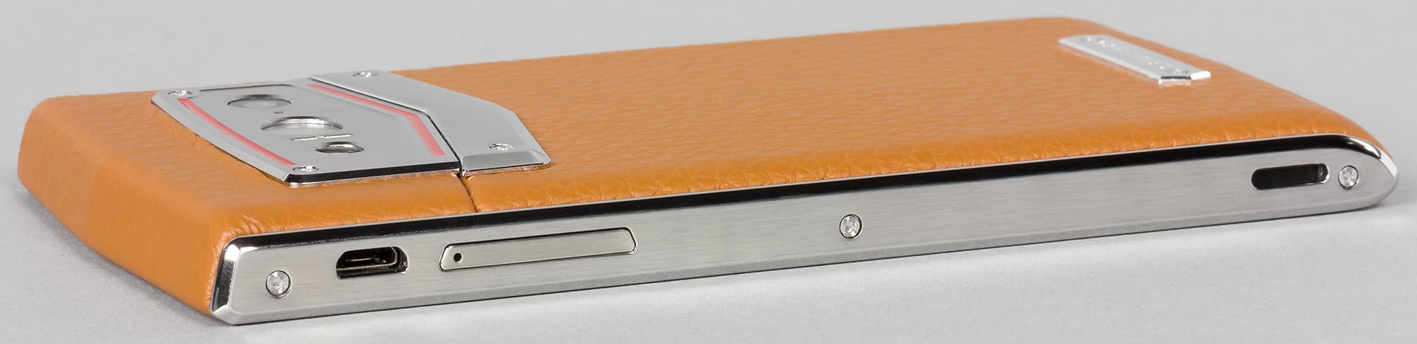 Словом, недостатки есть, но крепкий и практичный корпус и в руках не скользит, и отпечатков пальцев не собирает, и выглядит внушительно. К тому же, заявлена защита от водяных брызг и ударов по стеклу (nano waterproof & shockproof), ну а уж как долго будет оставаться в приглядном виде сама кожа, будет зависеть от конкретных условий использования аппарата. Есть подозрения, что именно на торцах она быстрее всего и придет в негодность.