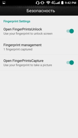 Сканер отпечатков пальцев работает сносно: скорость срабатывания далеко не молниеносна, но ошибок при распознавании практически нет. Можно установить до 4 разных отпечатков. Традиционно, с помощью датчика можно авторизоваться для запуска предварительно заблокированных приложений и управлять съемкой на камеру.