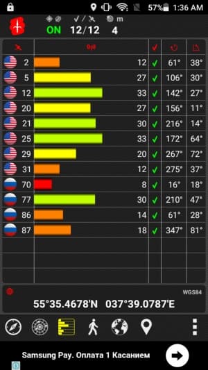 Навигационный модуль поддерживает две спутниковых системы навигации — GPS и Глонасс. Первые спутники при холодном старте обнаруживаются в течение первой минуты. Смартфон не забыли оснастить датчиком магнитного поля, на основе которого обычно функционирует цифровой компас навигационных программ.