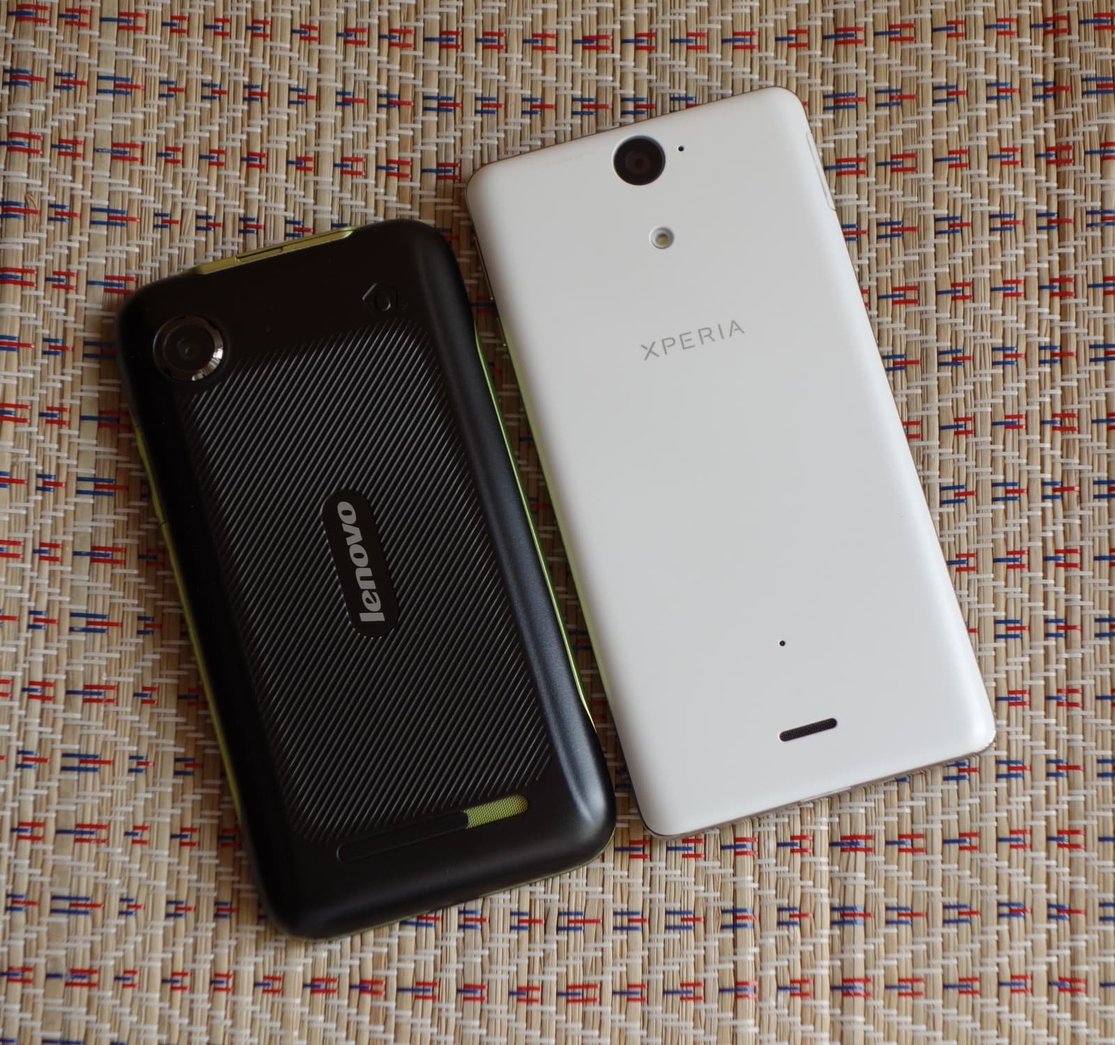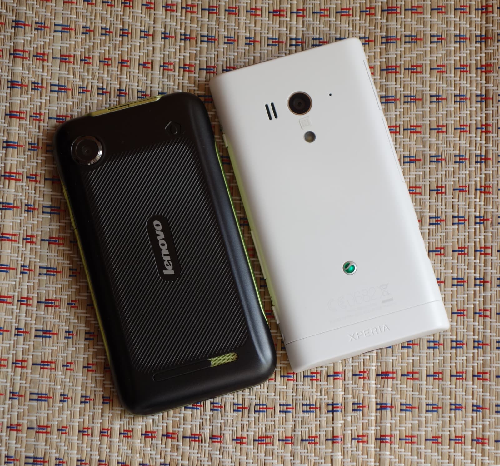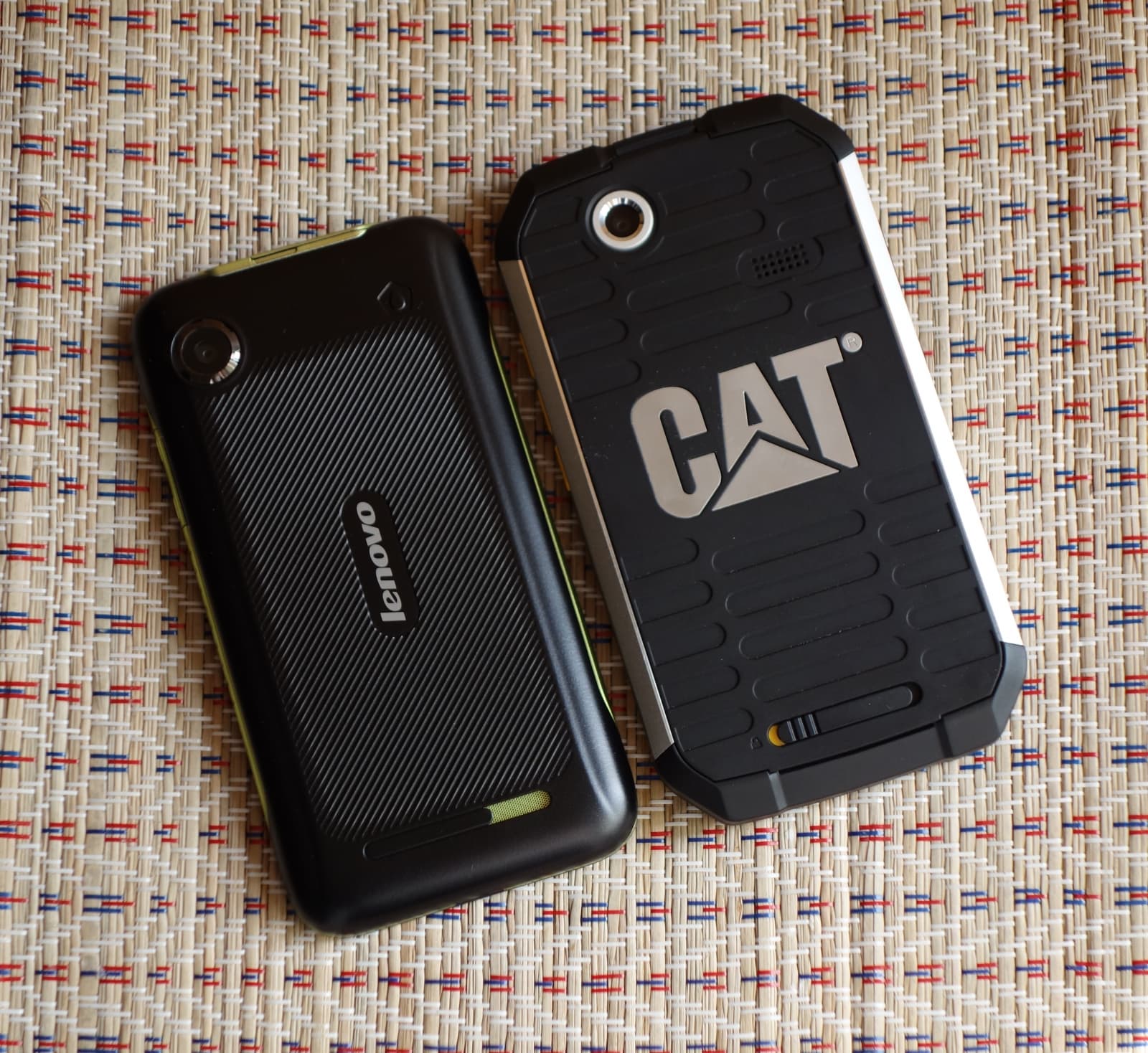 На снимках: Lenovo A660 в сравнении с пылевлагозащищенными смартфонами Sony — Xperia acro S, Xperia V и самой свежей из новинок, Xperia ZR, а также героем прошлого обзора — Cat B15.