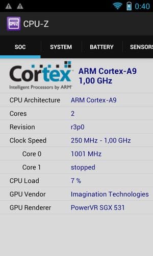 - SoC MediaTek MT6577, 1 ГГц, 2 ядра, ARM Cortex-A9