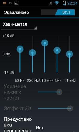 Штатный аудиоплеер ничем особенно не примечателен, из звуковых настроек имеется лишь стандартный эквалайзер с несколькими предустановленными значениями.