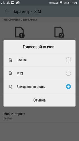 Смартфон поддерживает работу с двумя SIM-картами. Организация работы с ними удобна, все настройки собраны на одной странице. Любую из SIM-карт можно назначить основной для осуществления голосовых звонков, передачи данных или отправки SMS-сообщений. Можно выбрать желаемую карту прямо в момент вызова или отправки SMS. Разъемы для SIM-карт неравнозначны по своим возможностям, скоростную передачу данных в сетях 3G (4G) поддерживает только один слот, об этом необходимо помнить при первоначальной установке SIM-карт.