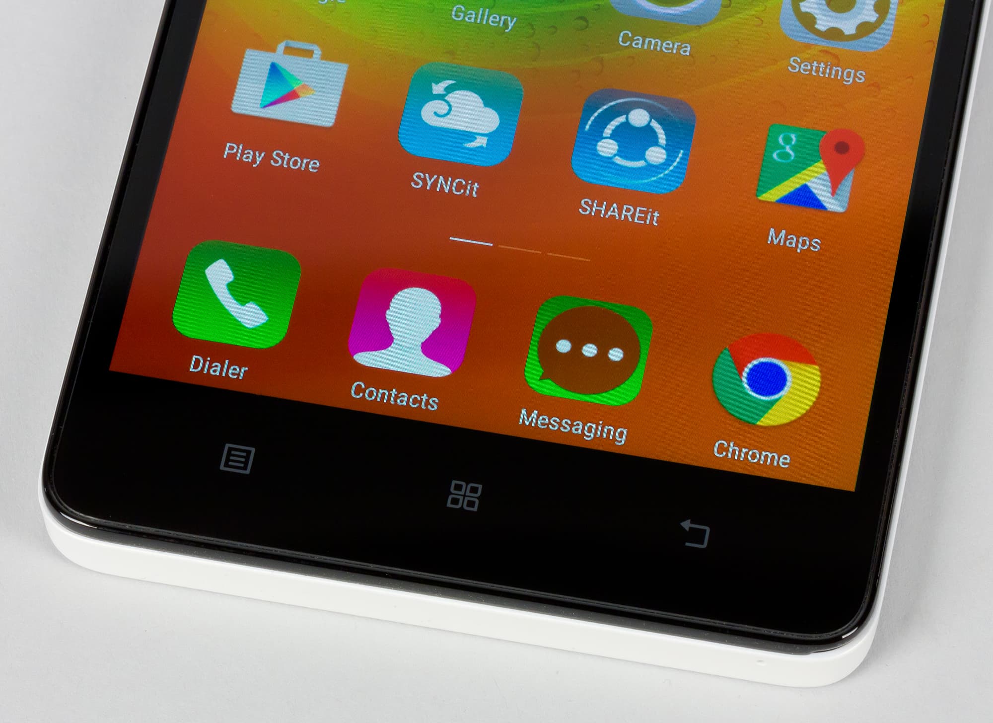 Экран у Lenovo A7000 немного светлее (яркость по фотографиям 120 против 114 у Nexus 7). Двоение отраженных объектов в экране Lenovo A7000 очень слабое, это свидетельствует о том, что между слоями экрана (конкретнее между внешним стеклом и поверхностью ЖК-матрицы) нет воздушного промежутка (экран типа OGS — One Glass Solution). За счет меньшего числа границ (типа стекло/воздух) с сильно различающимися коэффициентами преломления такие экраны лучше смотрятся в условиях сильной внешней засветки, но вот их ремонт в случае потрескавшегося внешнего стекла обходится гораздо дороже, так как менять приходится экран целиком. На внешней поверхности экрана есть специальное олеофобное (жироотталкивающее) покрытие (эффективное, даже лучше, чем у Nexus 7), поэтому следы от пальцев удаляются существенно легче, а появляются с меньшей скоростью, чем в случае обычного стекла.