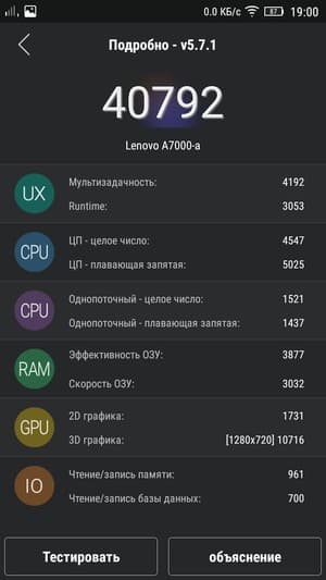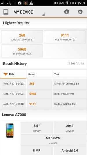 На текущий момент платформа MediaTek MT6752, пожалуй, является наиболее интересным решением для среднего уровня, поскольку смартфоны на ней оказываются дешевле, чем на конкурирующей Qualcomm Snapdragon 615, а в плане производительности значительно опережают ее. Производительности Lenovo A7000 еще вполне достаточно для выполнения любых без исключения задач, в том числе и достаточно требовательных 3D-игр.