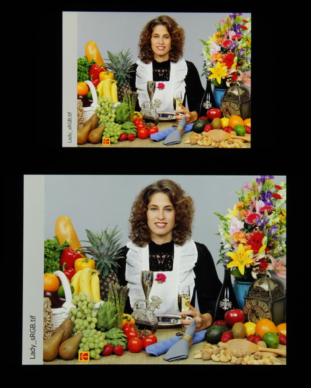 Равномерность яркости и цветового тона белого поля хорошая. И тестовая картинка: