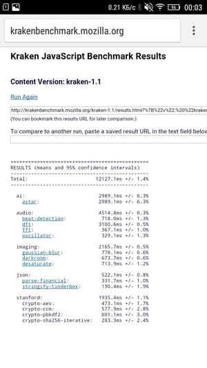 | Mozilla Kraken (мс, меньше — лучше) | 12127 | 17206 | 20375 | 6518 | 16955 | 24771 |