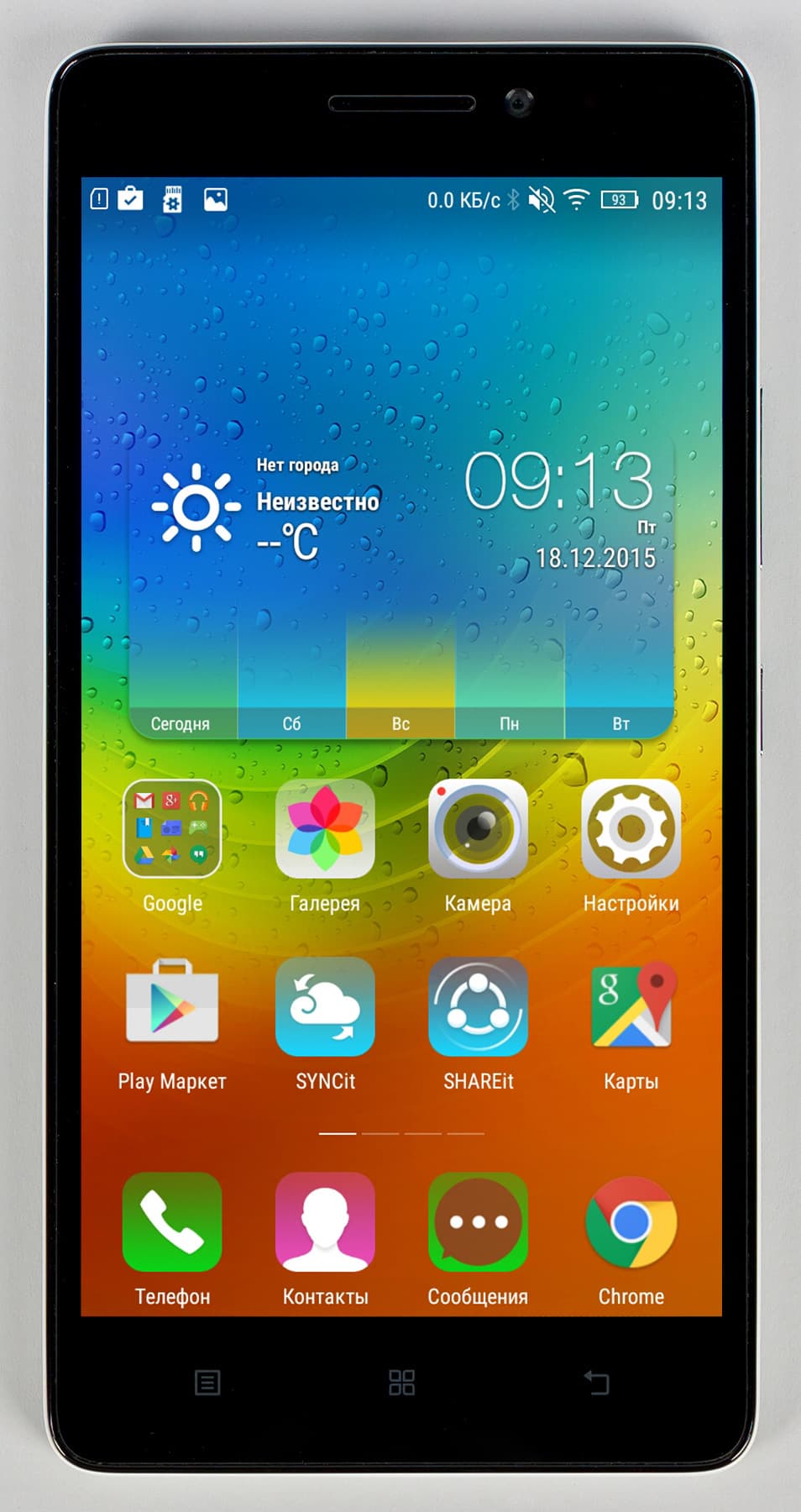 В качестве операционной системы используется программная платформа Google Android 5.0 с установленной поверх нее фирменной оболочкой Lenovo Vibe UI с возможностью обновления прошивки по воздуху (ОТА). Интерфейс хорошо знаком, он установливается сейчас практически во все современные смартфоны китайского производителя. Яркая аляповатая оболочка не выглядит стильно, но для пользователей, любящих покопаться в многочисленных настройках, она может представлять интерес своими широкими возможностями по настройке практически всего, что только можно. Здесь очень много предустановленных программ, причем бесплатных, которые можно самостоятельно найти и скачать при желании из магазина Play Store. Реализована поддержка жестов, экран можно активировать с помощью начертания букв латинского алфавита, при этом сразу произойдет переход к связанной с определенным знаком программе. Например, начертив на выключенном экране букву «О», можно разблокировать смартфон и сразу же запустить браузер Chrome.