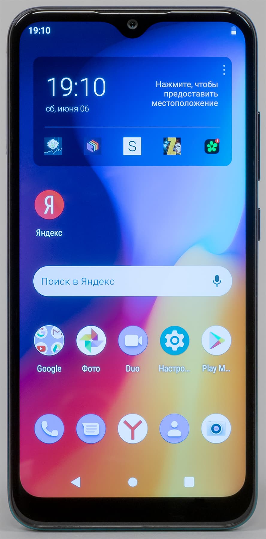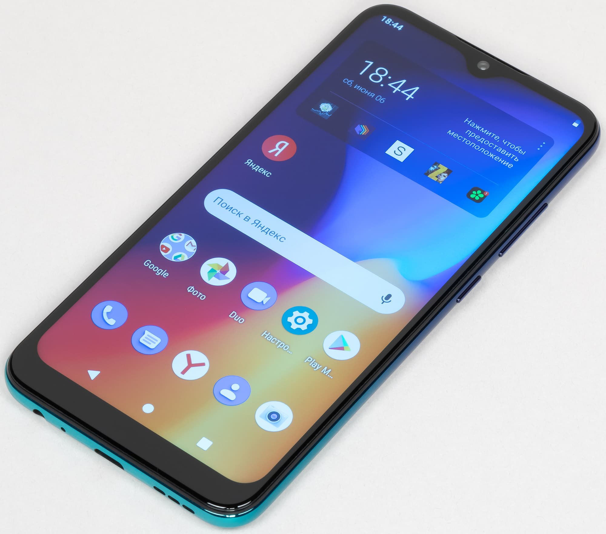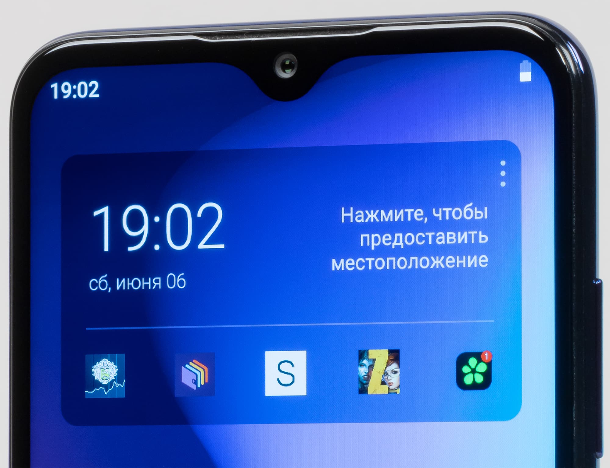 Фронтальная камера размещена в неадекватно крупном каплевидном вырезе в экране. Можно было бы сделать его вдвое меньше. К счастью, такой полезный элемент, как светодиодный индикатор событий, ставший сейчас, почему-то, досадной редкостью, здесь не забыли установить.