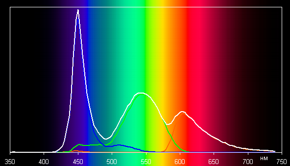 Спектры показывают, что светофильтры матрицы в умеренной степени подмешивают компоненты друг к другу: