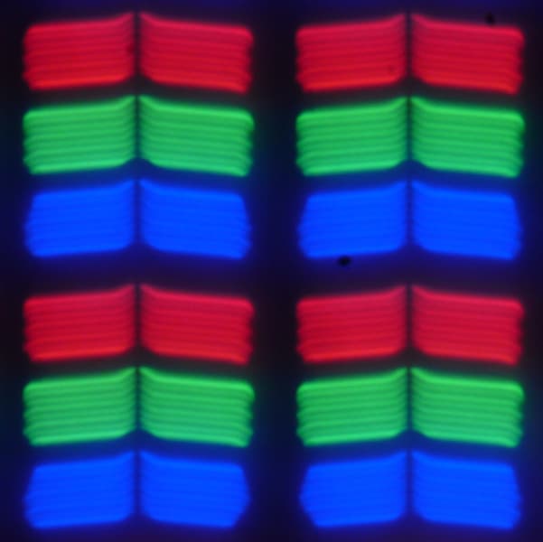 В данном смартфоне используется матрица типа IPS. Микрофотографии демонстрируют типичную для IPS структуру субпикселей:
